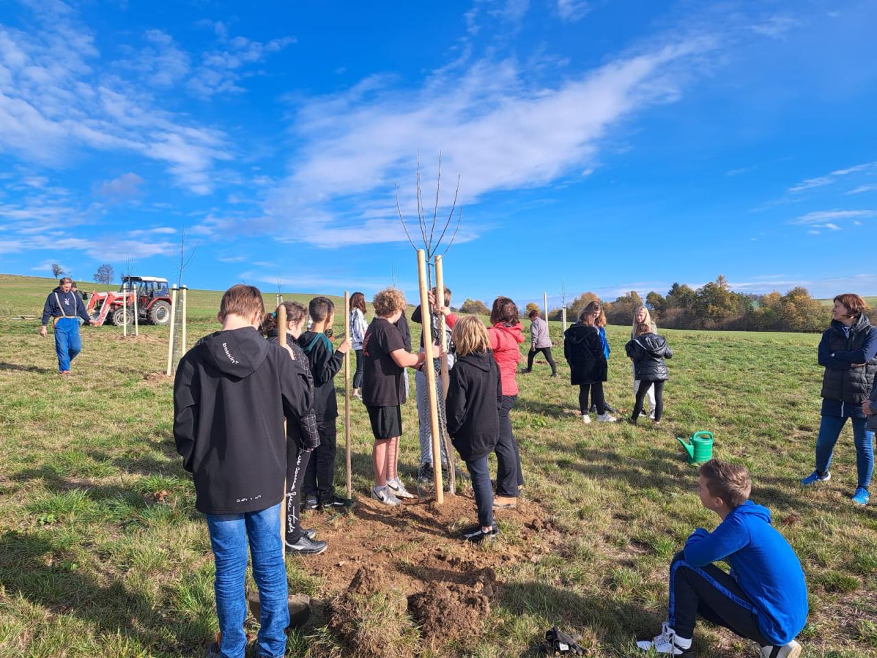 Dne 7.11. proběhlo vysázení 14 jabloní do ovocného sadu ve spolupráci dětí z mateřské školy a žáků druhého stupně základní školy. Akce proběhla s finanční podporou od Nadace ČEZ.